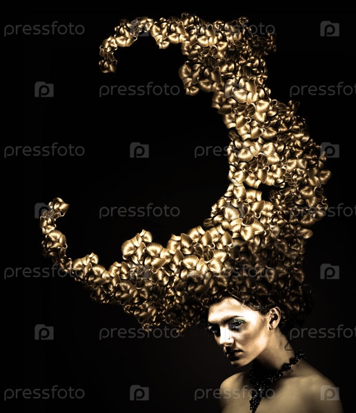 Красивая женщина с золотой прической в форме Луны
