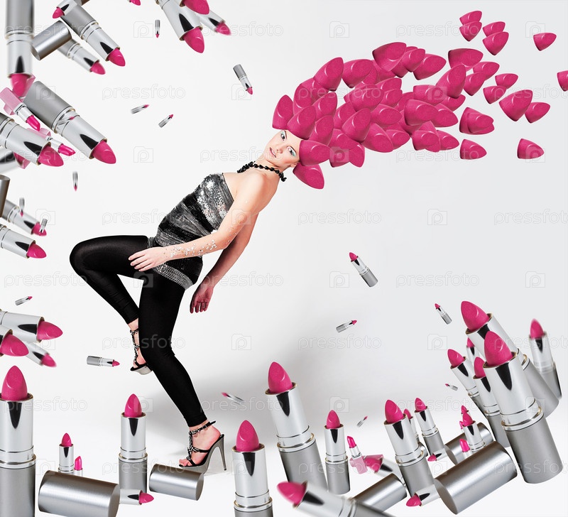 Модель с помадами на светлом фоне