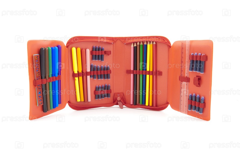 Набор цветных карандашей и ручек