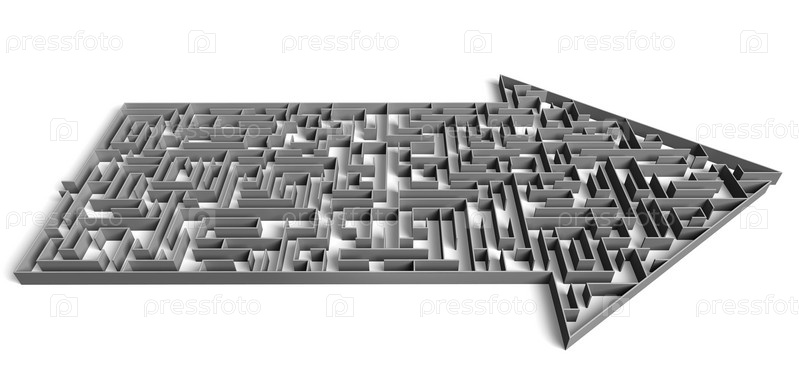 Лабиринт в виде стрелки на белом фоне