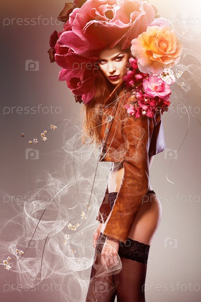 Сексуальная женщина в цветах