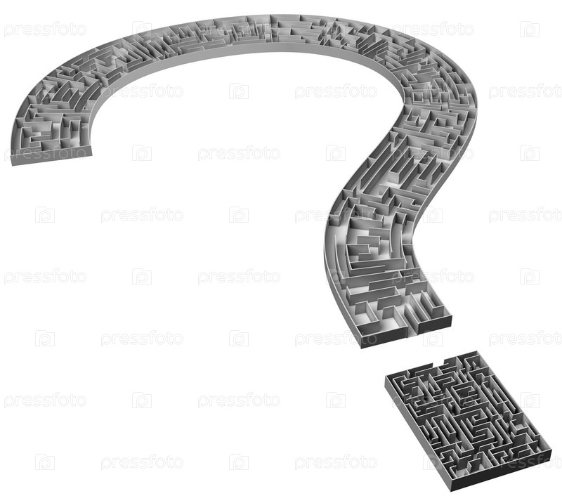 Лабиринт в виде вопросительного знака на белом фоне
