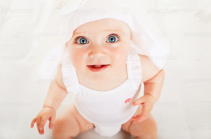 Забавный маленький ребенок в белой шляпе