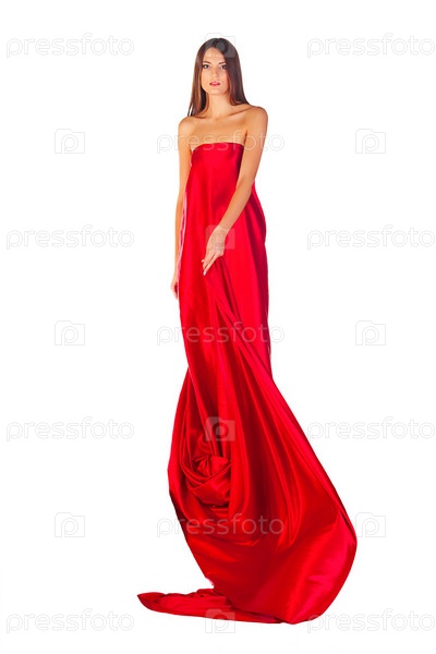 Модная девушка в красном платье