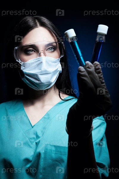 Ученый с пробирками с жидкостью