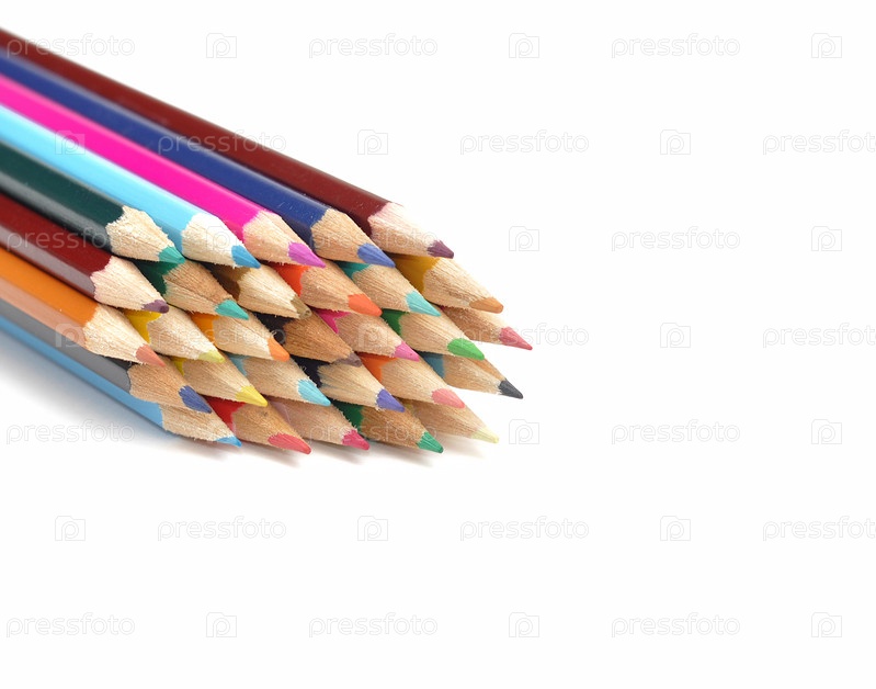 Цветные карандаши на белом фоне с свободным пространством для текста