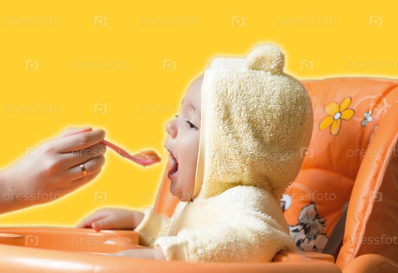 Маленький ребенок ест с ложки