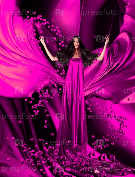 Модель в красном платье с великолепными волосами