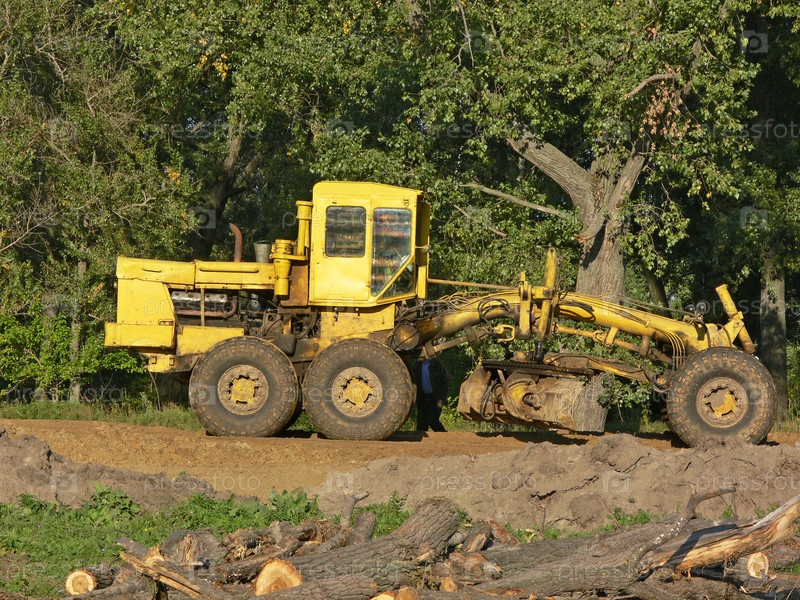 Грейдер на прокладке дороги
