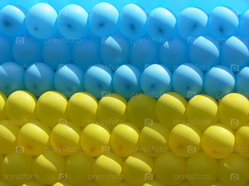 Праздничная стена из желтых и голубых воздушных шаров