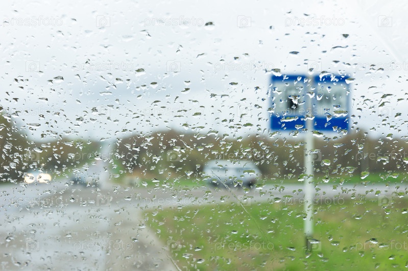 Лобовое стекло автомобиля во время дождя