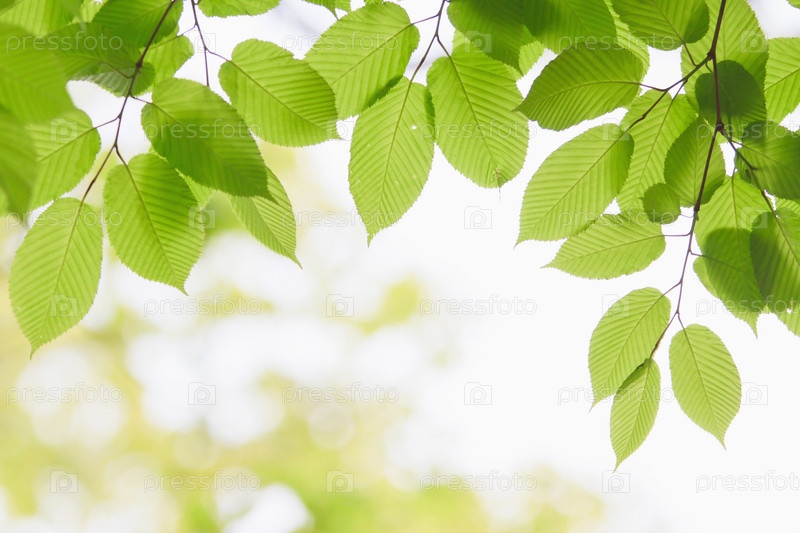 Зеленые листья крупным планом в солнечных лучах