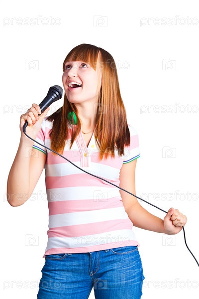 Девушка поет в микрофон