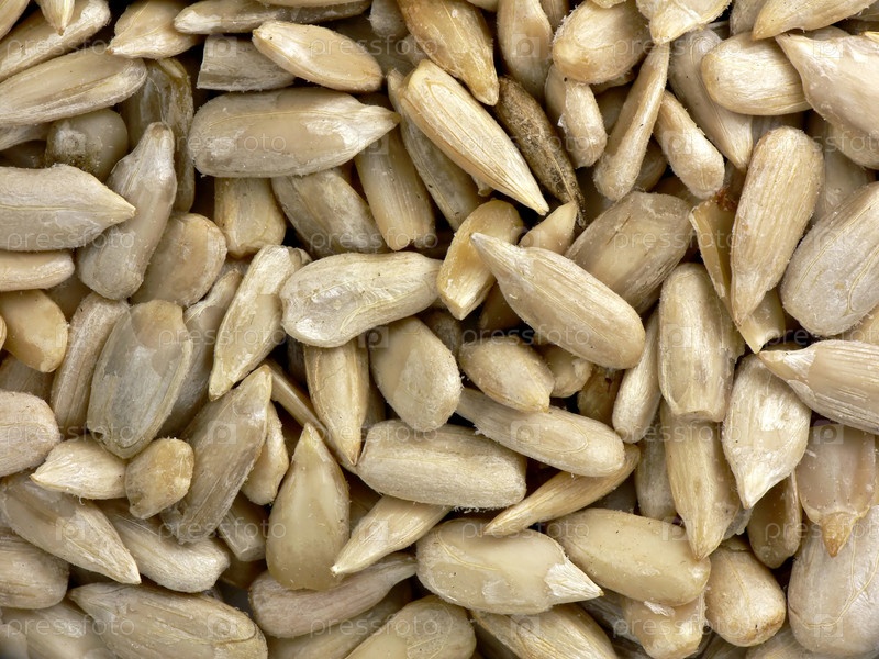 Продуктовый фон : очищенные сырые семена подсолнуха
