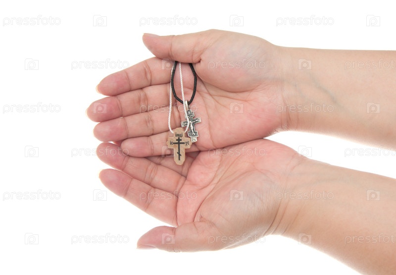 Православные кресты в руках, изолированы на белом