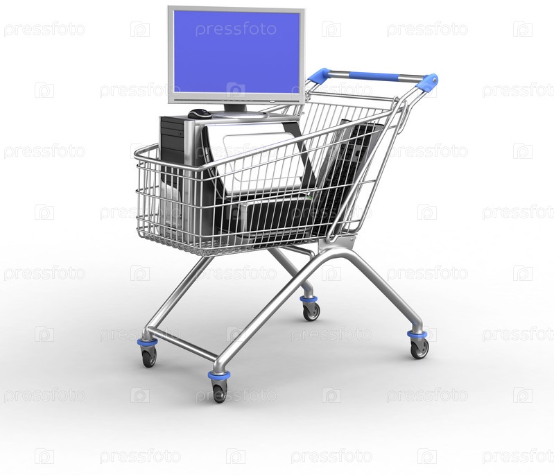 Компьютер в продуктовой тележке