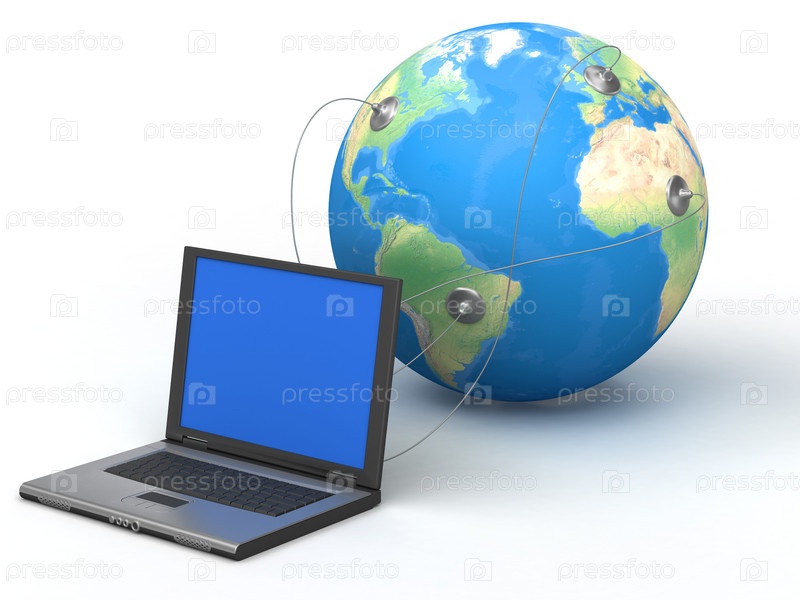 Ноутбук и земной шар соединены проводами