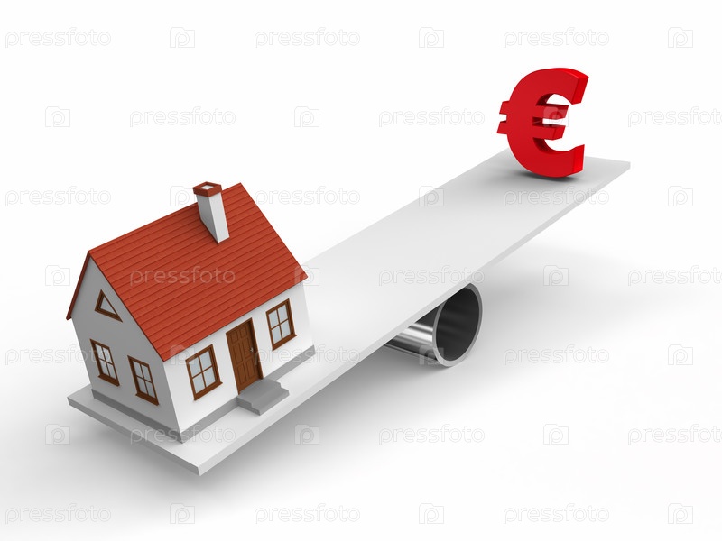 Дом и знак евро на весах