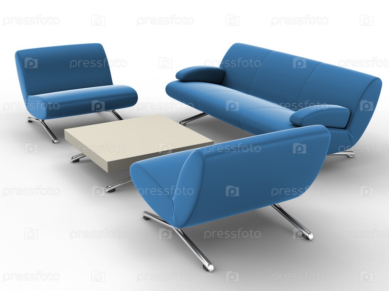 Диван, два стула и журнальный стол, 3D-иллюстрация