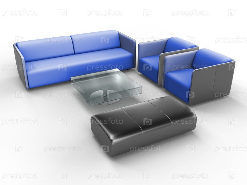 Мягкая мебель и журнальный стол, 3d-иллюстрация