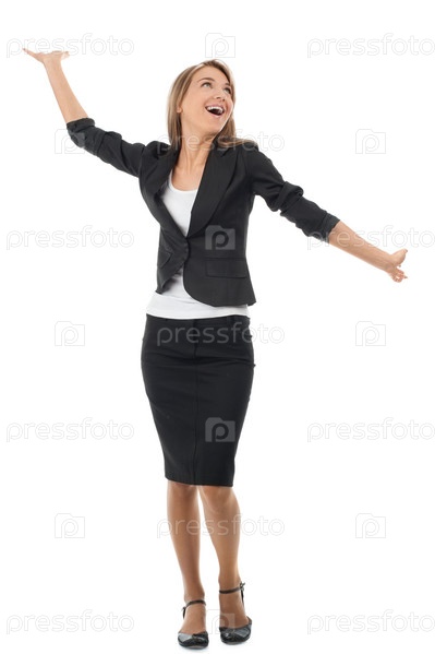 Бизнес-леди радуется успеху. Изолировано на белом фоне