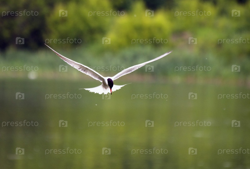 Крачка летит над водой