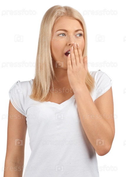 Девушка зевает, прикрывая рот рукой