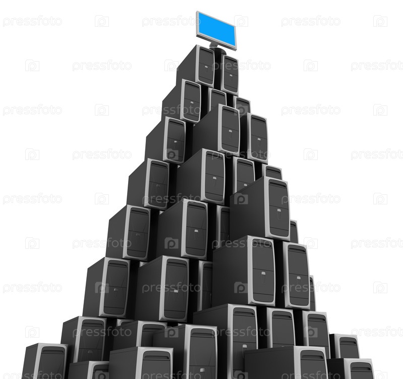 Монитор на верху кучи системных блоков