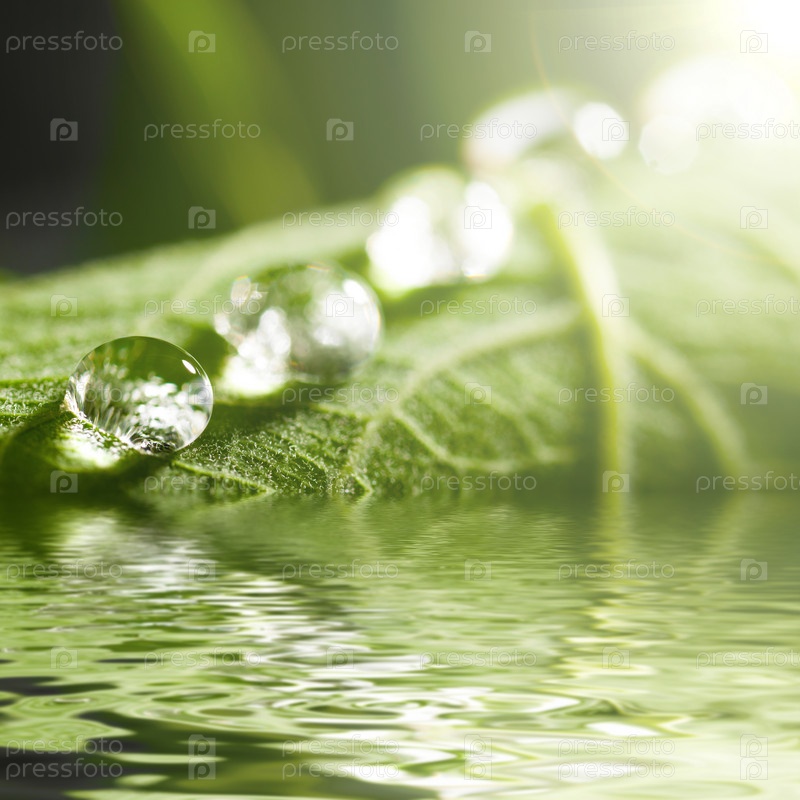 Капли воды на зеленом листе