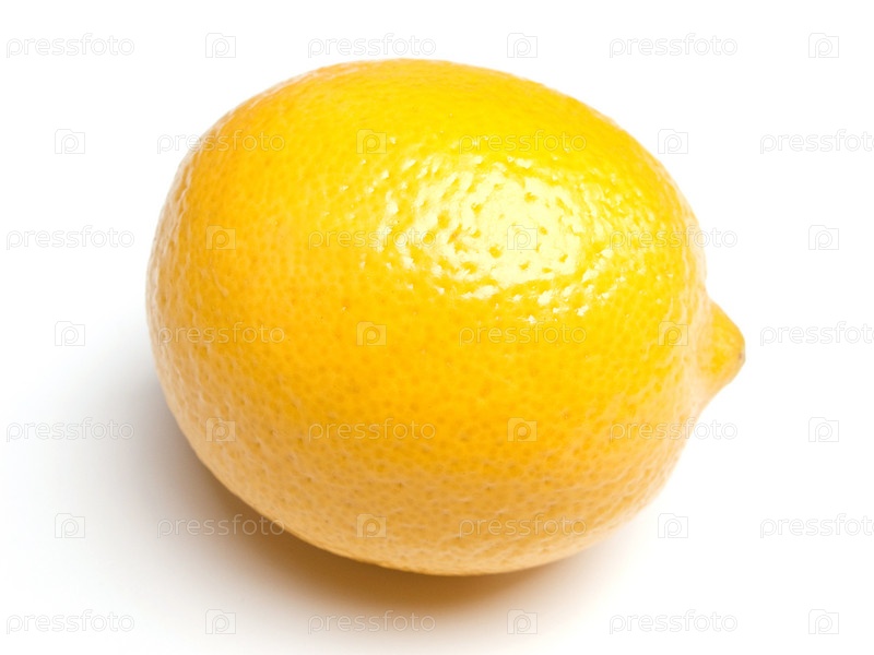 Ярко-желтый спелый лимон, изолированный на белом фоне