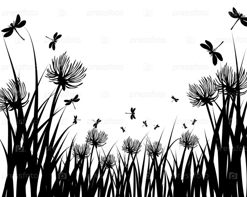 Силуэты травы и стрекоз. Все объекты разделены