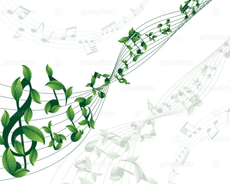 Ноты из листьев растений на нотном стане