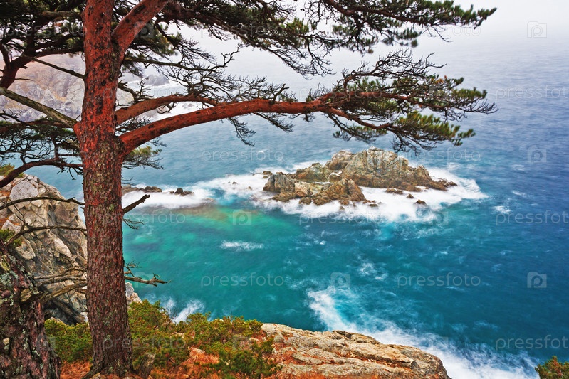 Дерево на краю скалы у моря