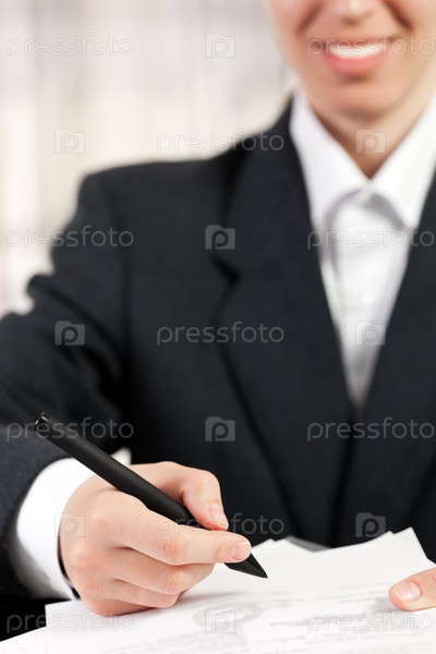 Бизнес-леди подписывает документ
