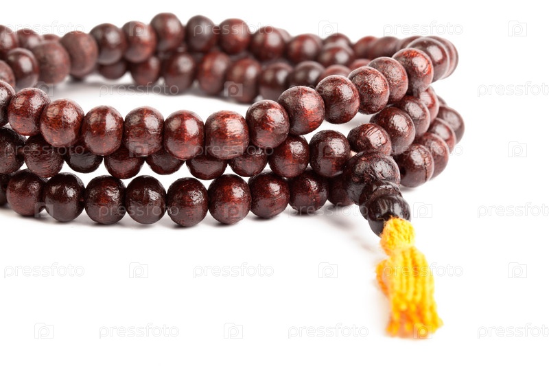 Буддийские четки на белом фоне