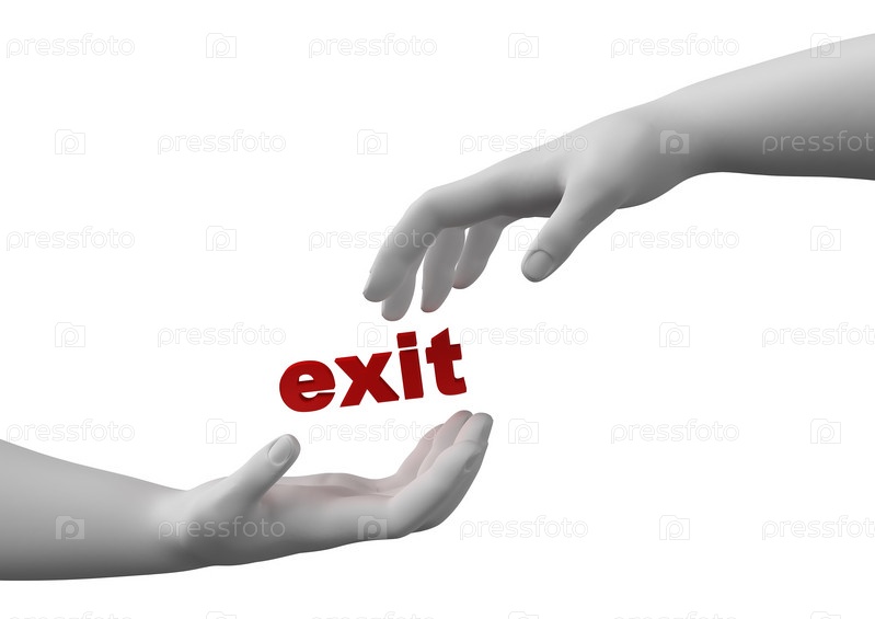 Две руки, простирающиеся к слову Exit