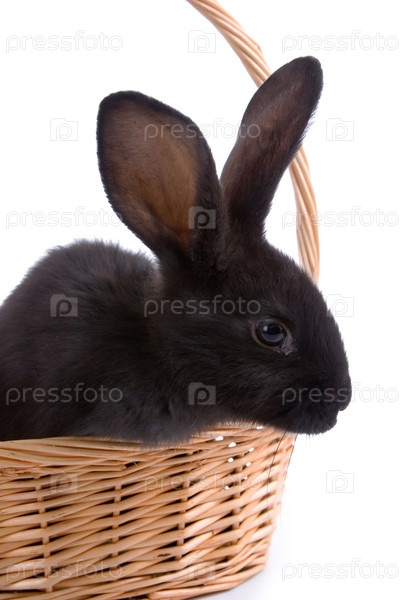 Черный кролик в корзине