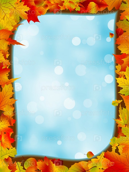 Рамка из осенних листьев на голубом небе, иллюстрация