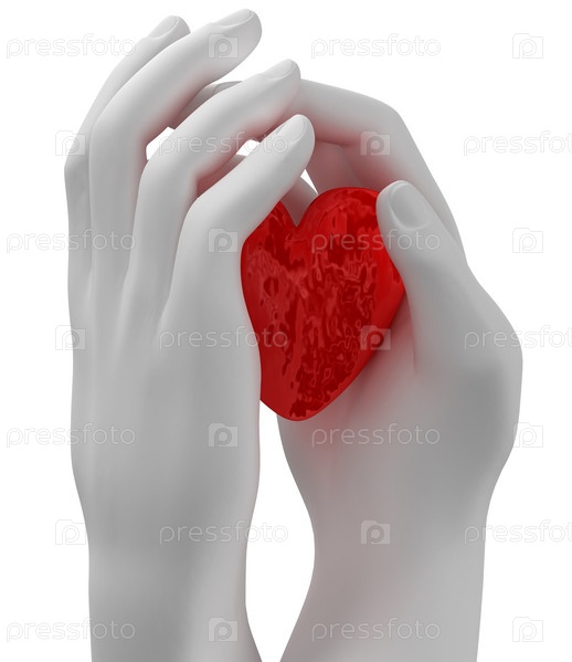 Красное сердце в руках