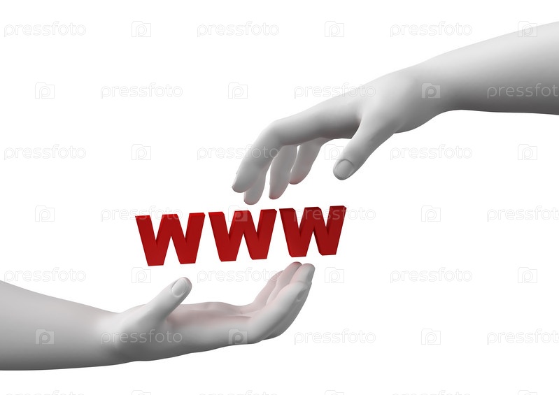Протянутые в сторону руки с надписью 'www'