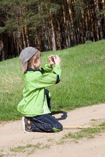 Мальчик с фотоаппаратом на улице