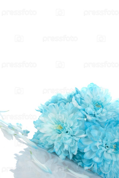 Букет голубых хризантем на белом фоне