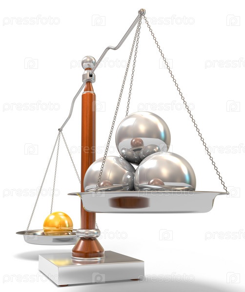 Золотой шар перевешивает три серебряных шара на весах