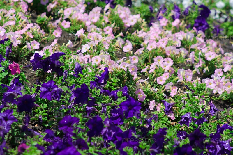 Клумба с фиолетовыми и розовыми цветами
