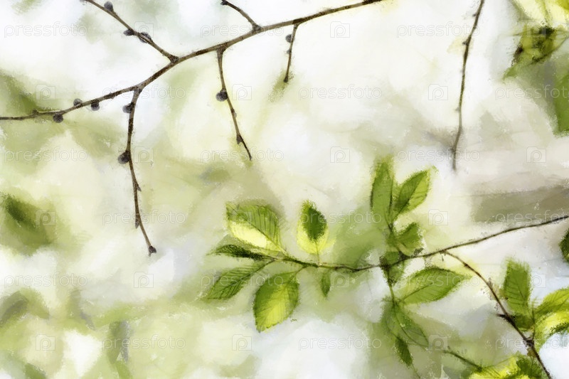 Ветки дерева, акварельный рисунок
