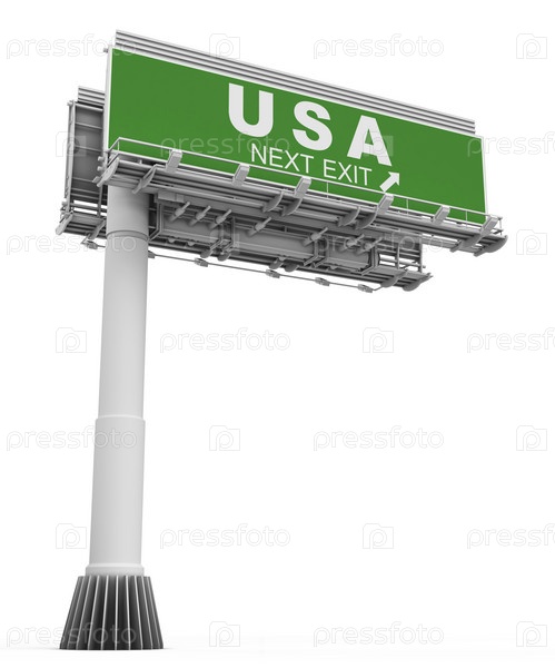Биллборд с надписью "США" по-английски на белом фоне