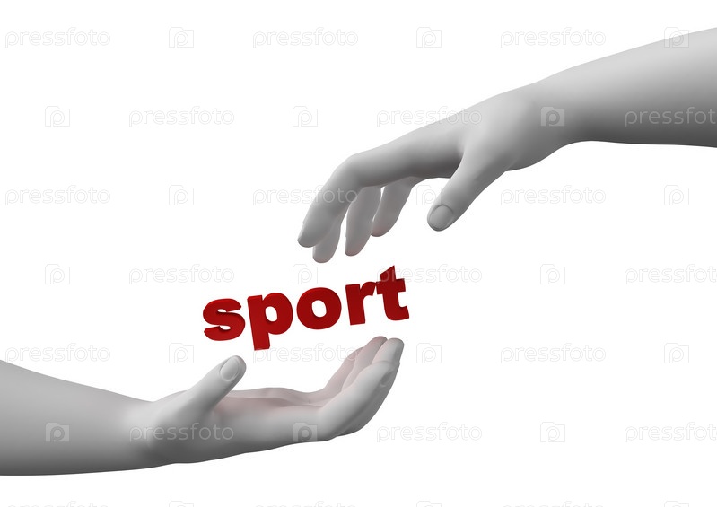 Две руки, протянутые к слову 'спорт'