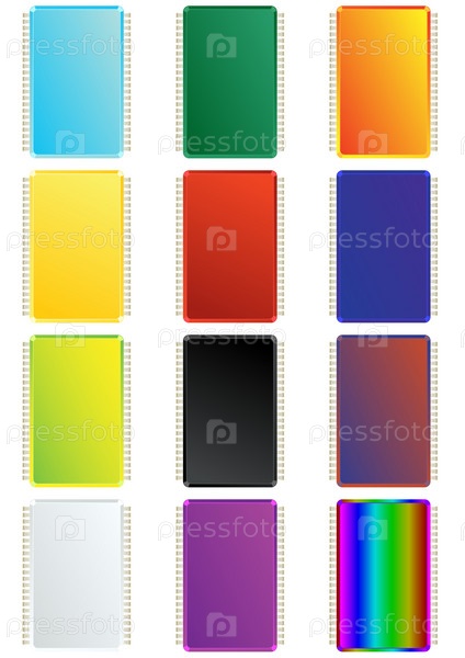 Разноцветные микросхемы, иллюстрация на белом фоне