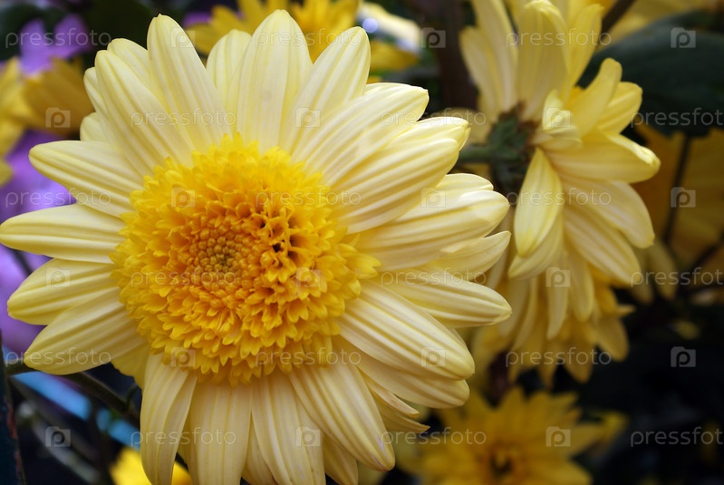Кусок желтой хризантемы в цветочном шоу