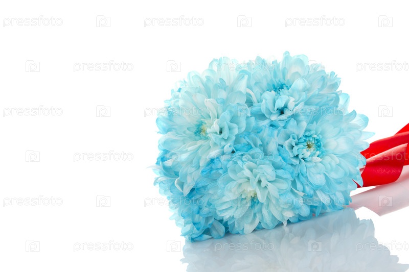 Голубые хризантемы с красной лентой